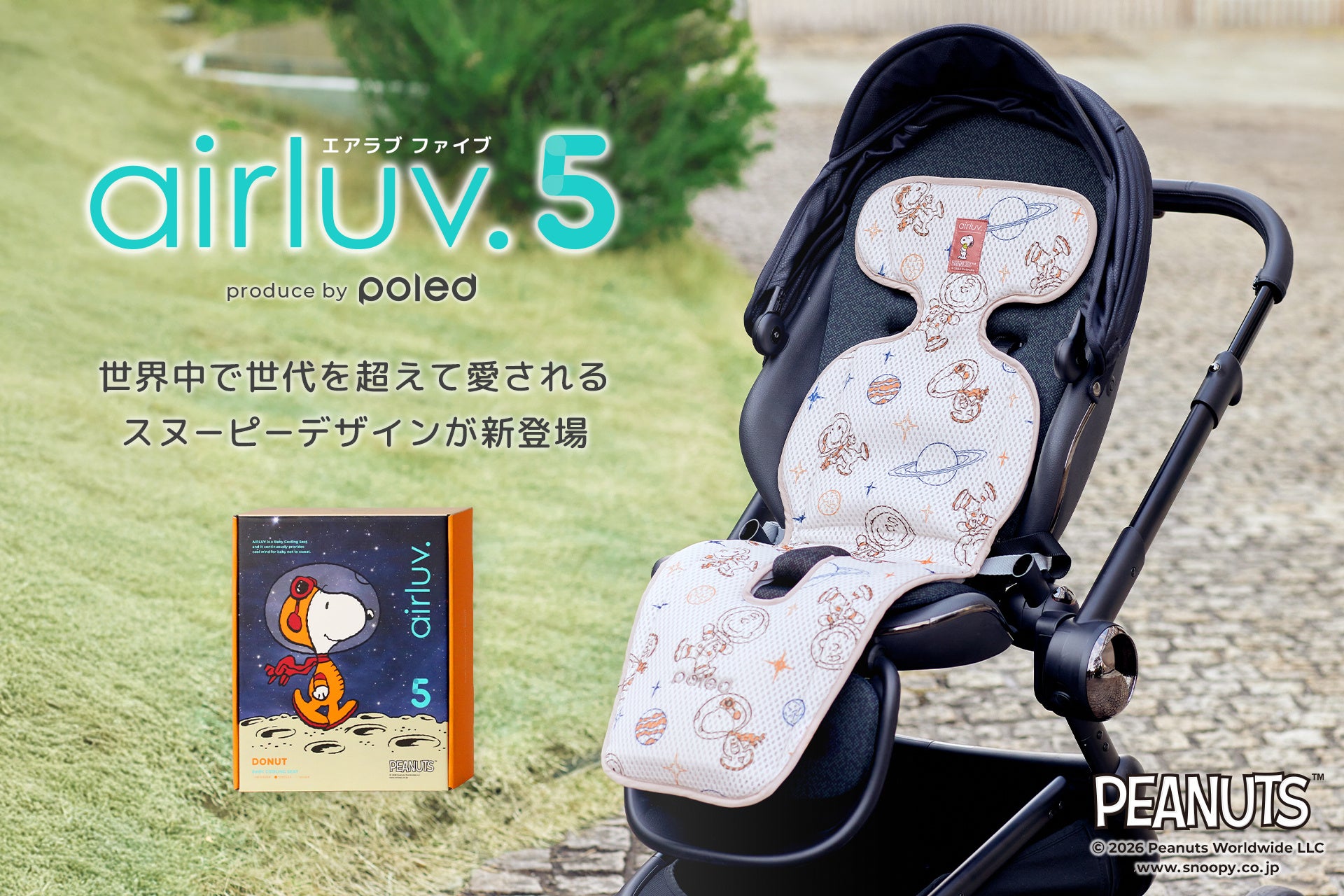コマースメディア株式会社(本社:東京都豊島区、Poled日本総代理店)は、赤ちゃん用送風機付きクールシート2026年最新モデル「airluv.5(エアラブ5)」において、PEANUTSキャラクター「スヌーピー」をあしらったデザインモデルを公式オンラインストアにて展開いたします。