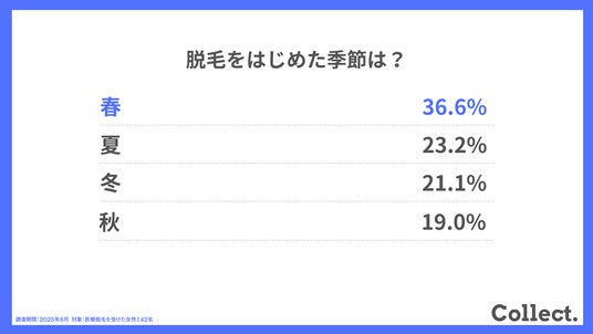 最も多かったのは「春(36.6%)」で、次いで「夏(23.2%)」となりました。夏本番に向けて春から始めるスケジュールが定番化している様子が見て取れます。