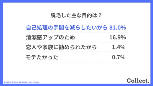ディーエムソリューションズ株式会社(東証スタンダード上場)が運営するメディア「Collect.(コレクト)」では、医療脱毛を受けた女性142名にアンケート調査を実施しました。