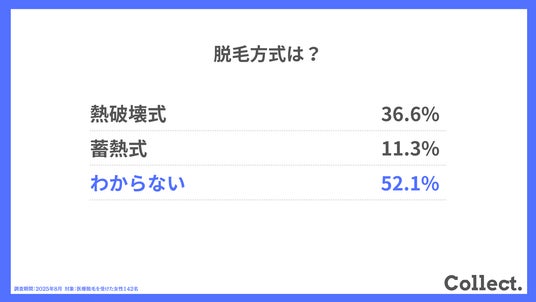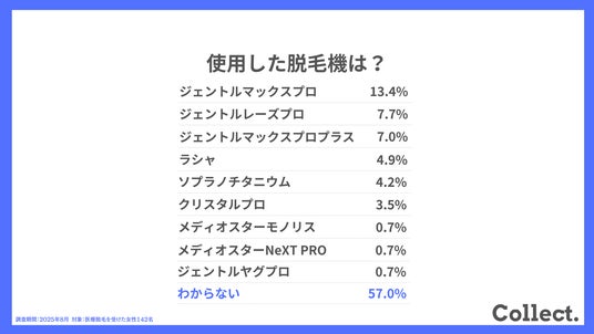 本アンケート結果や画像をご利用いただく際は、引用元として「Collect.(コレクト)URL(https://www.dm-s.co.jp/collect/epilation-list/)」へのリンク設置をお願いいたします。