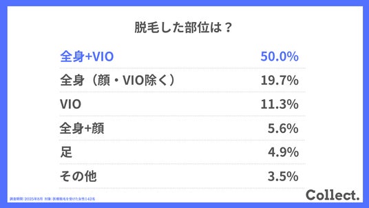 ディーエムソリューションズ株式会社(東証スタンダード上場)が運営するメディア「Collect.(コレクト)」では、医療脱毛を受けた女性142名にアンケート調査を実施しました。