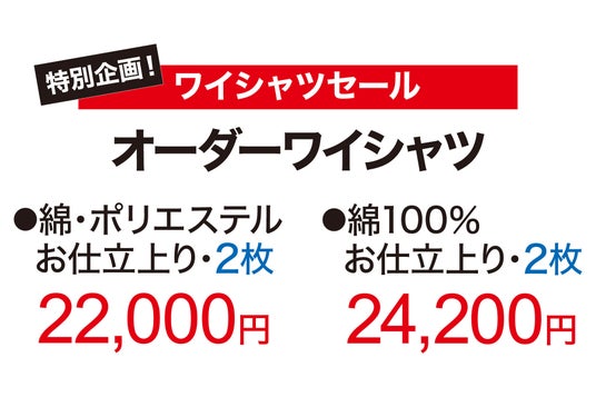 国産有名メーカーの高品質生地を使用。半期に一度の特別価格で叶う、自分だけのサイズとデザインで仕立てる贅沢な2着セール。
