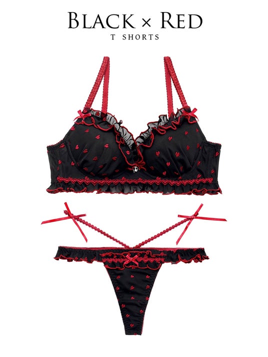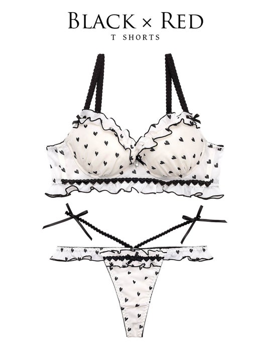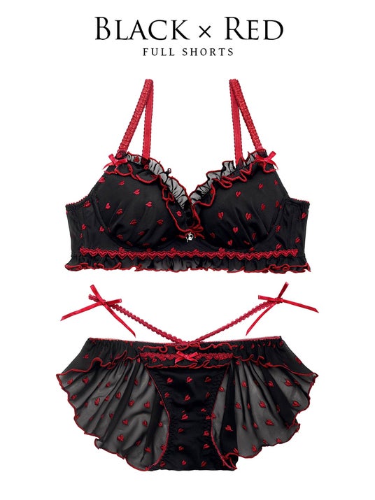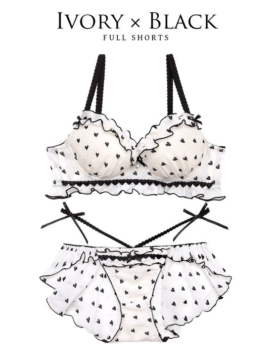 ハート刺繍が散りばめられたシフォンに、キャンディーみたいなフリル。