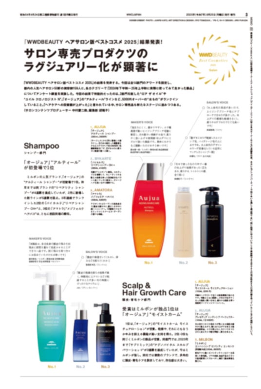 ・「WWDBEAUTY ヘアサロン版ベストコスメ 2025」結果発表! サロン専売プロダクツのラグジュアリー化が顕著に