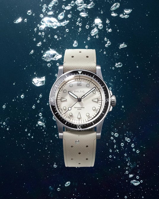 前作「Aquascaphe Classic(アクアスカーフクラシック)」が築き上げたクラシックなデザインコードを継承しつつ、ケース・ダイヤル・針・ストラップに至るまで細部を刷新。視認性、耐久性、装着感を徹底的に磨き上げた、新世代のツールウォッチとして生まれ変わります。