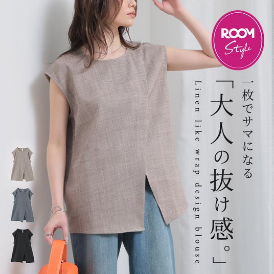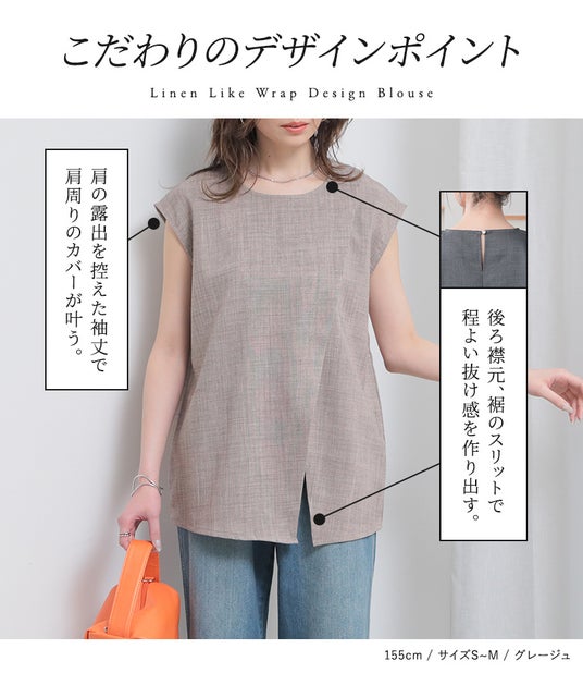 リネンライクラップデザインブラウス(★楽天市場店限定販売)