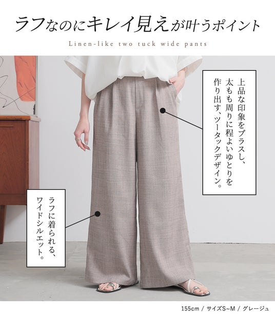 リネンライクツータックワイドパンツ(★楽天市場店限定販売)