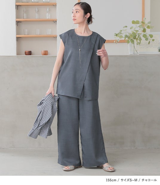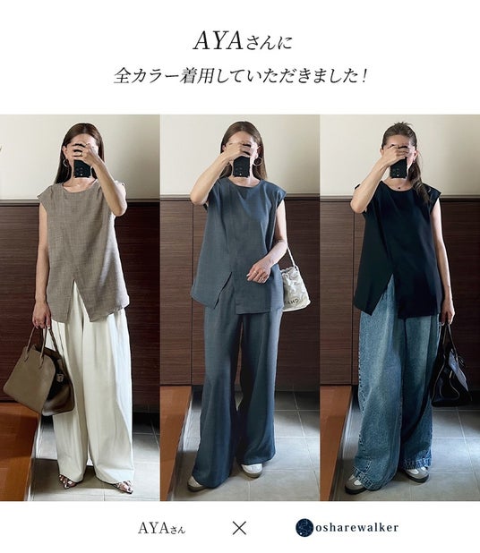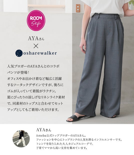 人気インフルエンサーAYAさんとのコラボリネンライクブラウスとワイドパンツが登場。涼し気な印象のリネンライク素材を使用しているので、暑い季節でも快適にご着用いただけます。