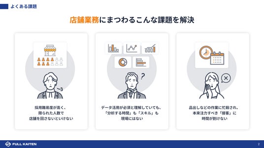 今回提供を開始するFULL KAITEN〈ストアエージェント〉と既存のFULL KAITENプロダクトを組み合わせることで、より効果的に全社横断的に売上・利益の改善が可能になります。