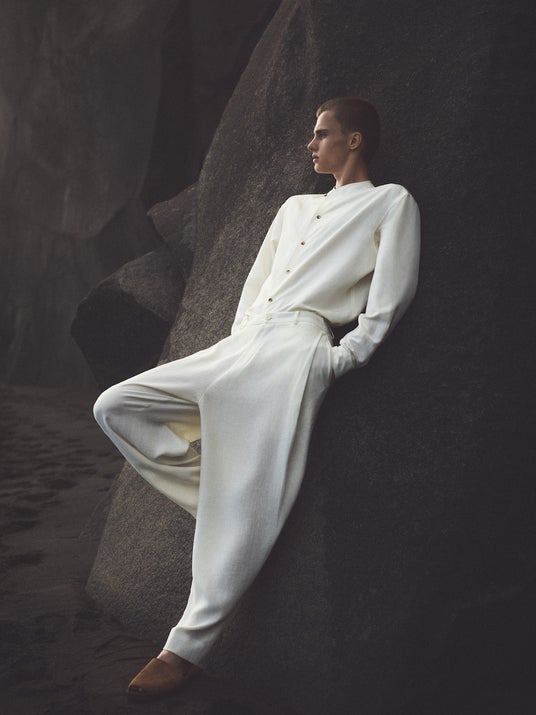 今シーズンを象徴するリラックスしたスタイルは、ロロ・ピアーナが創り出す、輝きに満ちた涼しげなファブリックにも反映されています。シルク、コットン、リネンというメゾンの夏に欠かせない素材は、テーラリングの新境地を開拓し、洗練とカジュアルなレジャーウェアのリラックス感を融合させた贅沢で快適なワードローブに。カジュアルなスタイルを選んでも、これらのウェアは控えめながらも洗練された雰囲気を醸し出し、言葉にしなくても一目でわかるシグネチャーを感じさせます。身体に沿って柔らかく流れるようなシルエットは、幅広いシーンで活躍します。