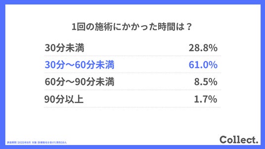 - 施術時間は9割近くが1時間以内。61.0%が「30~60分未満」と回答
