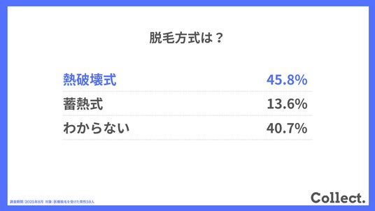 - 脱毛方式は「熱破壊式」が4割超。一方で方式を把握していない人も多い