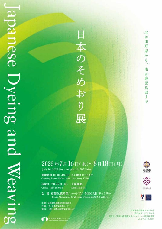 2025年7月16日より、京都伝統産業ミュージアム MOCADギャラリー(京都市左京区、みやこめっせB1F)にて、各産地の誇る技術を結集したきものや帯などを一堂に集めた「日本のそめおり展」が始まりました。本展は、全国和装産地市町村協議会(13市2町加盟)が主催し、8月18日まで開催しています。
