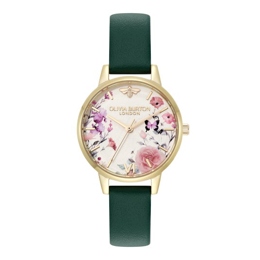 ブランドを象徴する繊細な手描きのフラワーモチーフが、まるで冬の庭の花々をそのまま閉じ込めたように文字盤いっぱいに広がり、柔らかな光をまとって手元を彩ります。立体的な蜂のモチーフを12時位置に配したアイコニックなデザインは、可憐さの中にさりげない遊び心を添え、見るたびに心ときめく仕上がりに。ライトグレーレザーにローズゴールドを合わせた優しい輝き、深みのあるフォレストグリーンとクラシカルなゴールドの組み合わせ、そしてローズゴールドメッシュが放つフェスティブな華やかさ。3つのバリエーションが、それぞれ異なる個性で冬の装いを引き立てます。花の美しさ、自然の息づかい、そして英国らしいロマンティシズム。オリビア・バートンが描く「冬の庭」は、手元に小さな物語を咲かせます。