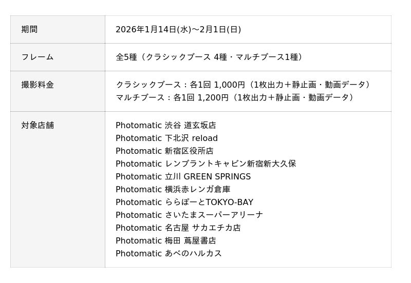 ぜひお近くのフォトブースで撮影をお楽しみください。