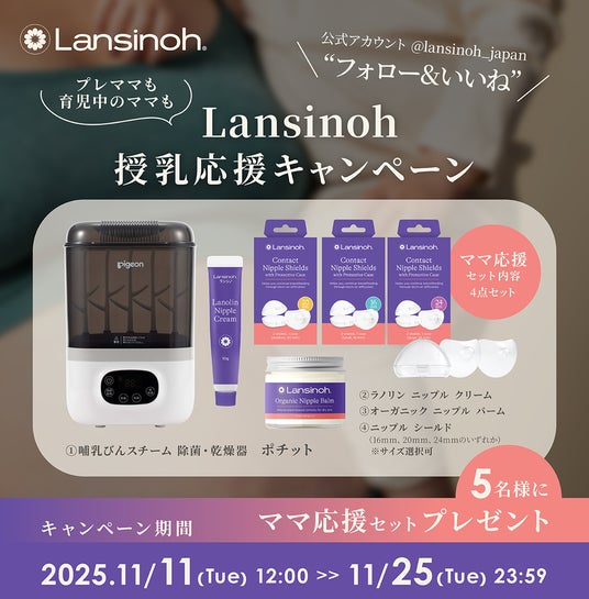 ピジョン株式会社(本社:東京、社長:矢野 亮)が展開する米国発の母乳育児サポートブランド「Lansinoh(R)(ランシノ)」は、日本国内での本格上陸第1弾として、7種の天然植物由来の保湿成分を配合した「オーガニックニップルバーム」(乳頭クリーム)および「ニップルシールド」(乳頭保護器)を新発売。2025年11月14日(金)より、一部オンラインストア及び、一部ベビー用品専門店などで順次販売いたします。また、発売を記念し、抽選で5名様に本商品が当たるキャンペーンを開催いたします。
