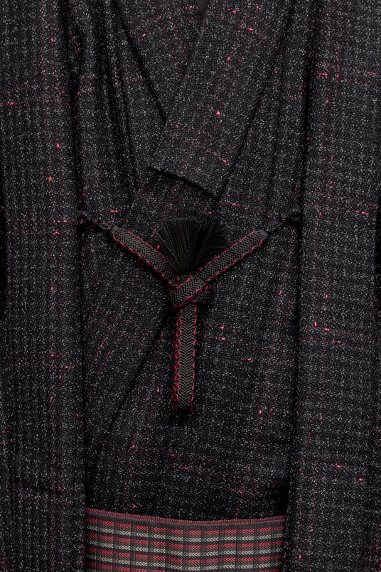 きもの:米沢織 / 千鳥格子 / MULTI RED 181,500円 羽織:米沢織 / 千鳥格子 / BLACK 170,500円 帯:博多角帯 / 杉綾×やすら縞 / DEEP BLACK 49,500円