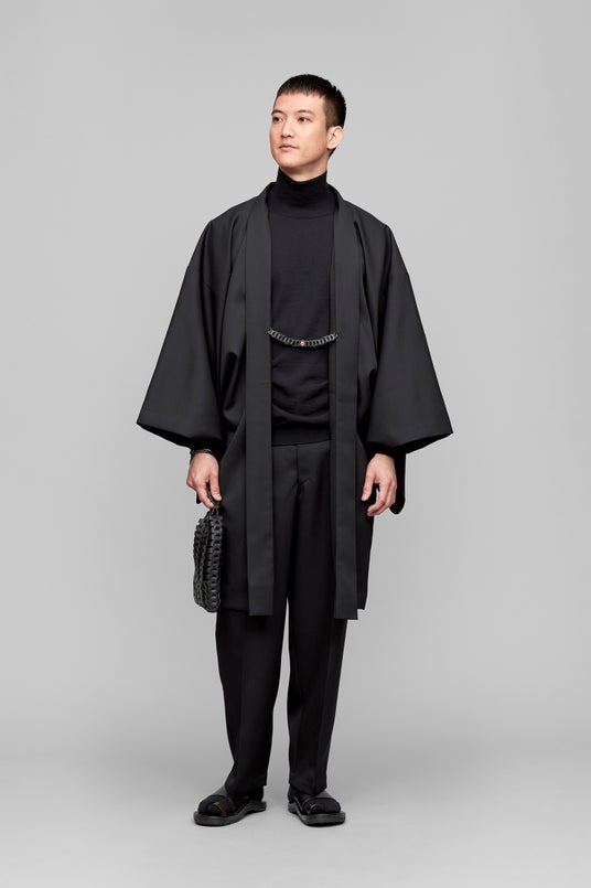 今回のコレクションでは、テーラーならではの“仕立て”によって生まれる生地の表情や、時間とともに深まる素材の風合いに着目。片貝木綿や十日町紬、米沢織といった全国の伝統さんちとともに、素材そのものの力を引き出す新たなものづくりに取り組みました。