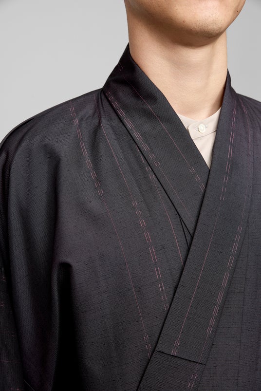 きもの:片貝木綿 / 平織り / 黒 66,000円 羽織:THOMAS MASON / GATSBY / BLACK 77,000円