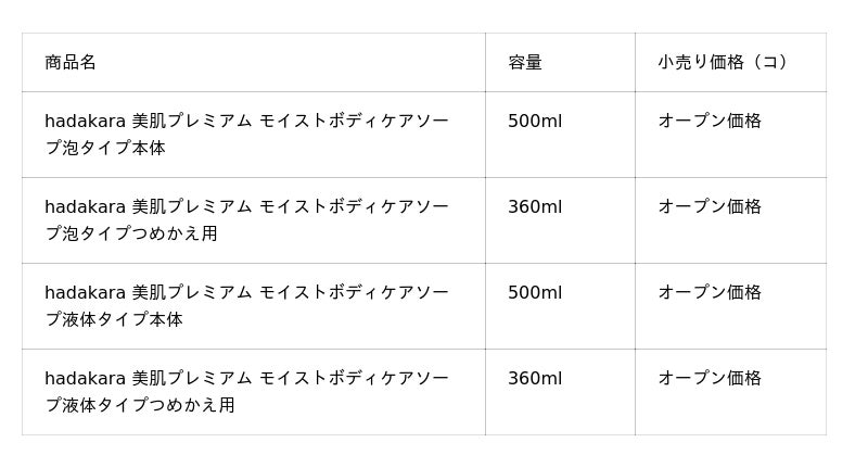 ・「うるおい密着ヴェール処方」で、お風呂あがりも全身に保湿成分がとどまり、洗うたび、なめらかでハリのある肌へ導く『hadakara 美肌プレミアム モイストボディケアソープ』を新発売