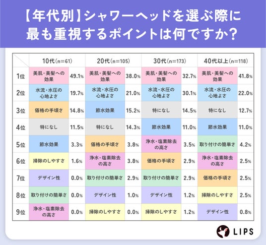 株式会社AppBrew(本社所在地:東京都文京区、代表取締役:松田崇)が運営する美容プラットフォーム「LIPS(リップス)」は、「シャワーヘッド」についてLIPSユーザー457名を対象に、アンケート調査を実施しました。今回の調査では、シャワーヘッドを選ぶ上での重視点から情報収集の方法まで、ユーザーの具体的な行動や価値観を調査しました。