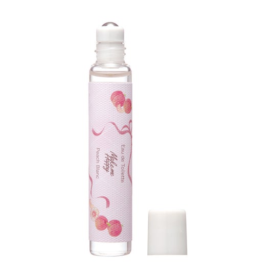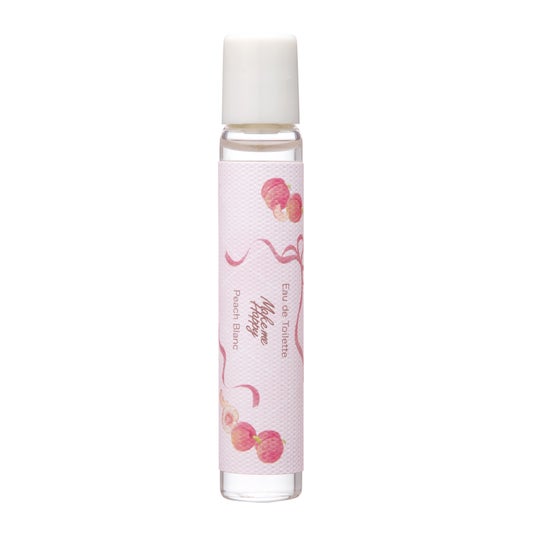ロールオンタイプで使いやすい!やさしい香り立ちの「メイクミーハッピー オードトワレ」から、ピーチの香り「Peach Blanc(ピーチブラン)」が仲間入り。甘い香りを感じさせる白桃とリボンが描かれたキュートなデザインパッケージ。