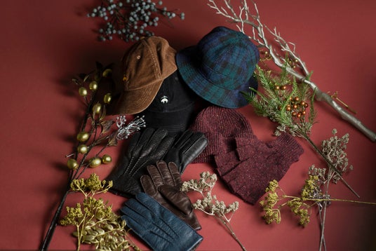 上質なレザーグローブやニット帽、防寒用としても活躍するコーデュロイ生地のベースボールキャップなどホリデーギフトにぴったりなあったか小物が揃いました。ベースボールキャップ 各¥8,800、 ブラックウォッチ柄リバーシブルハット¥18,700、ドネガルニットキャップ¥13,200、フィンガーレスグローブ¥9,900、レザーグローブ各121,000(全て税込価格)