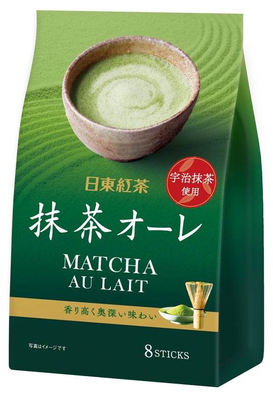 日東紅茶 抹茶オーレ8本入りこだわりの抹茶とミルクを合わせて、ていねいに仕上げた抹茶オーレです。抹茶の香りとミルクの味わいで優雅なひとときを演出します。お湯にサッと溶かすだけで手軽に楽しめるインスタント飲料です。便利なスティックタイプで、ご自宅ではもちろん、持ち歩きやオフィスでもティータイムをお楽しみいただけます。