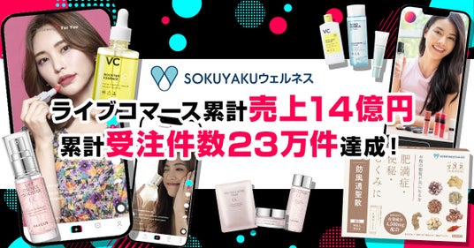 このたび当社は、TikTokやInstagramをはじめとしたSNSでのライブコマースを積極的に活用した販売施策により、ライブコマースをスタートしてから累計で売上14億円、受注件数23万件を達成したことをお知らせいたします。