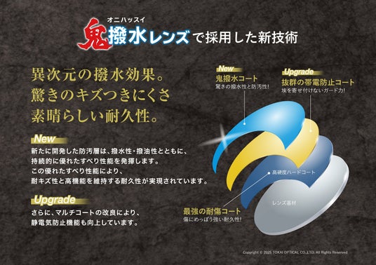 メガネ・補聴器を販売する「メガネの愛眼」(https://www.aigan.co.jp/)を運営する愛眼株式会社(本社:大阪市天王寺区、代表取締役社長:佐々 昌俊)は、異次元の撥水力を誇るレンズ【鬼撥水レンズ】を2025年5月30日(金)より全国の愛眼店舗にて販売を開始したことをお知らせします。