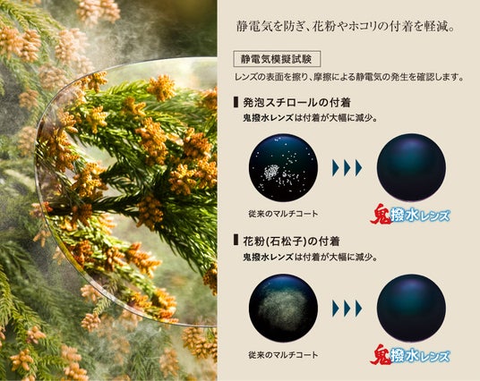 ◎鬼ポイント3:花粉や黄砂、PM2.5などのホコリがつきにくい『静電気防止性』