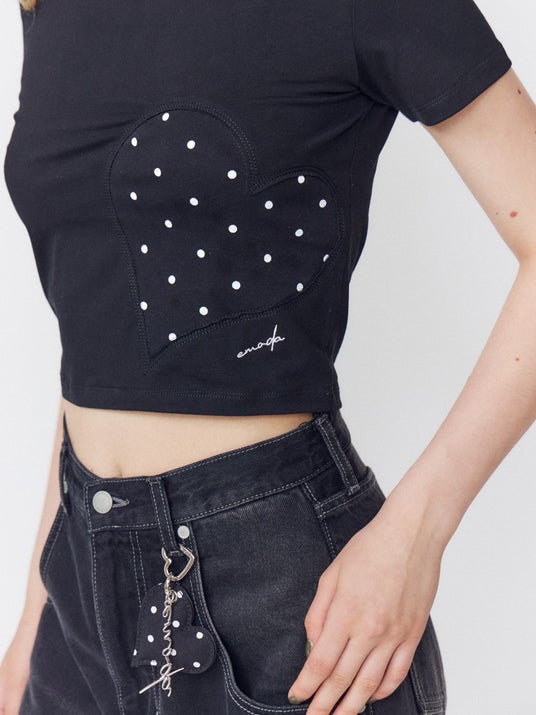 ハートのキーチェーン付きデニム&立体ハートTシャツが登場