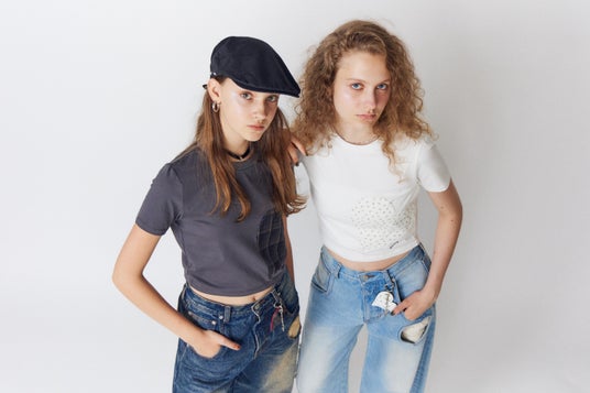 HEART CUT PATTERN T/S グレー 4,950円 / HEART LOOSE JEANS インディゴ 17,380円(全て税込)
