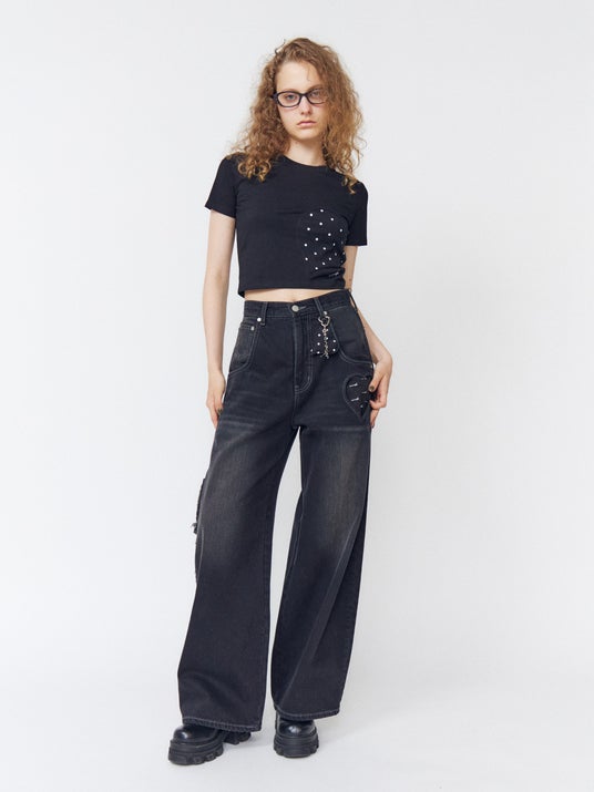 HEART CUT PATTERN T/S ブラック 4,950円 / HEART LOOSE JEANS ブラック 17,380円(全て税込)