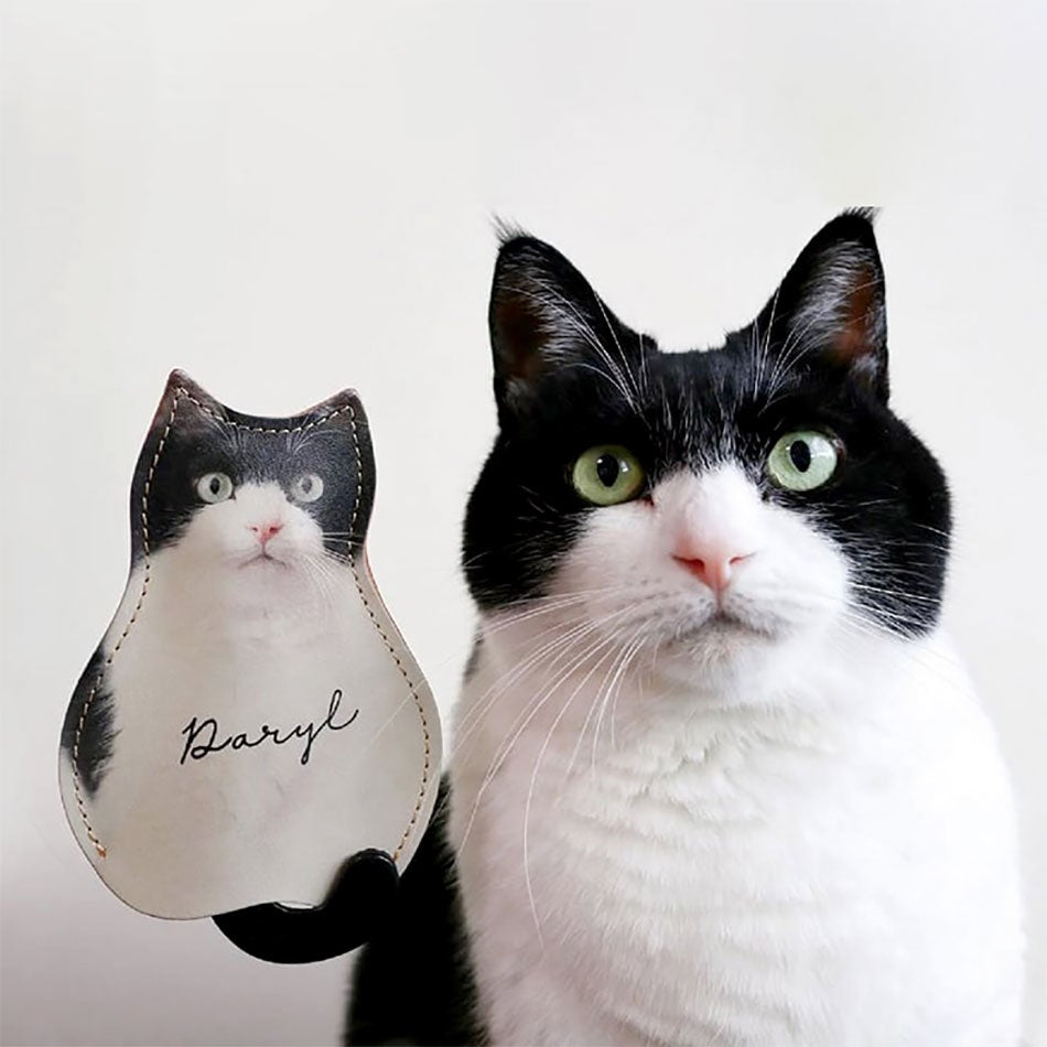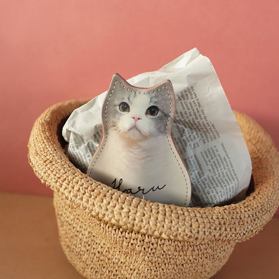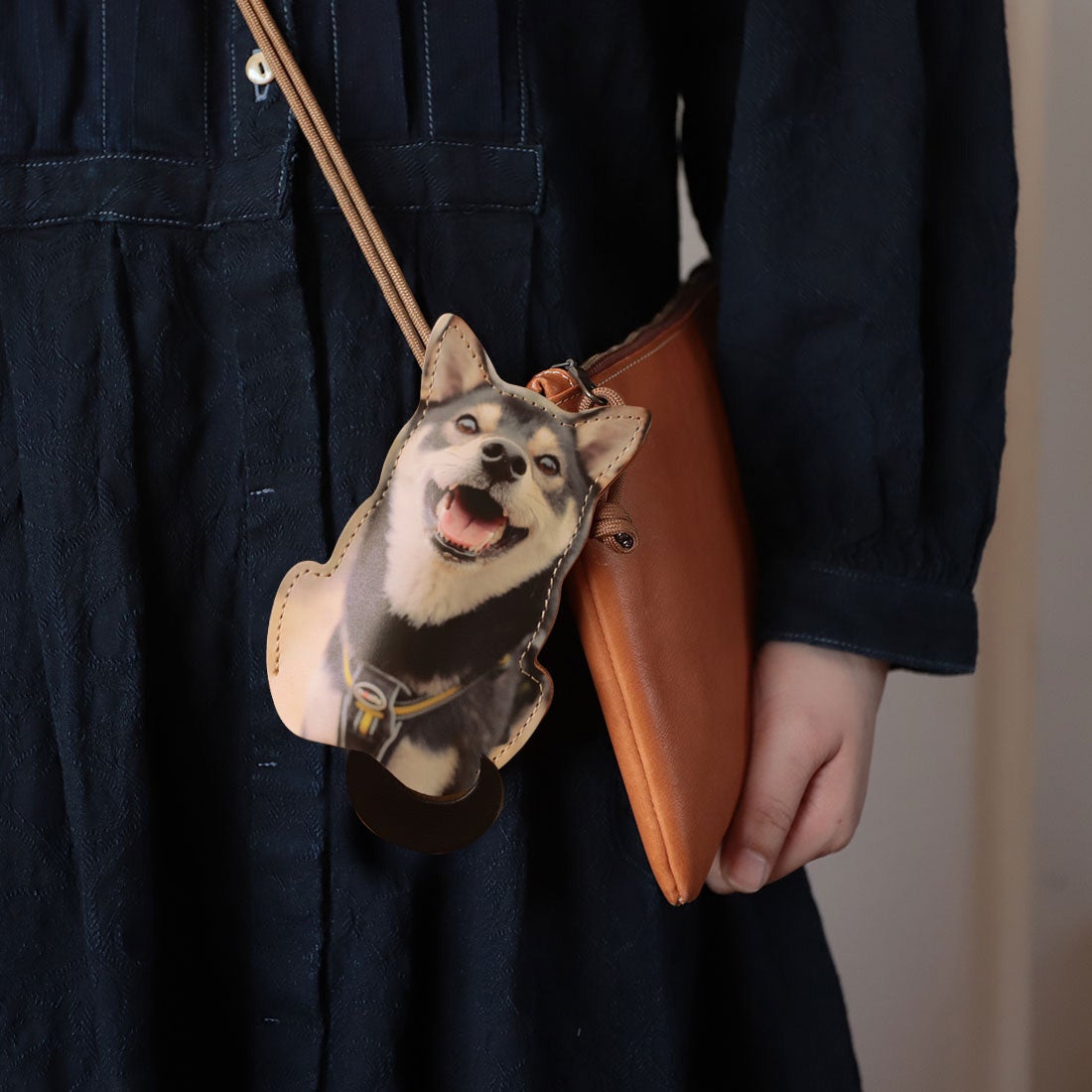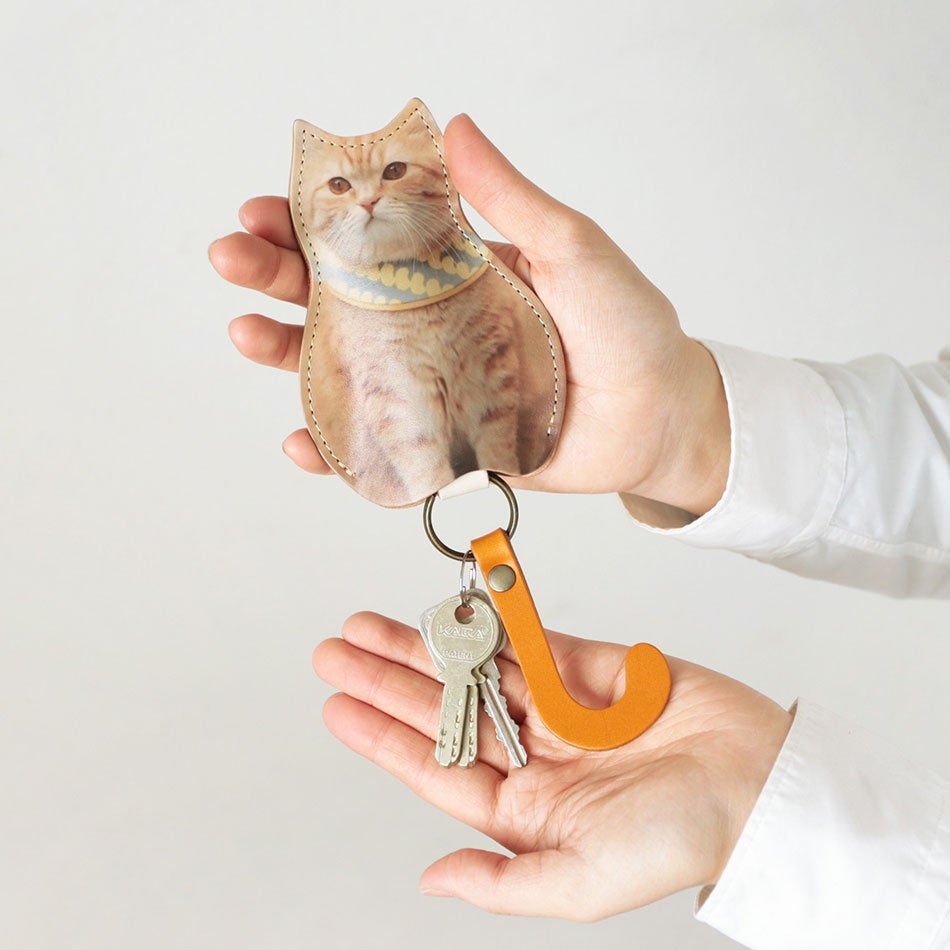 愛犬・愛猫の写真をもとにデザインし、革職人が一点ずつ仕立てる本革キーケース。何気ない表情やしぐさ、思い出の一枚でハンドメイドいたします。