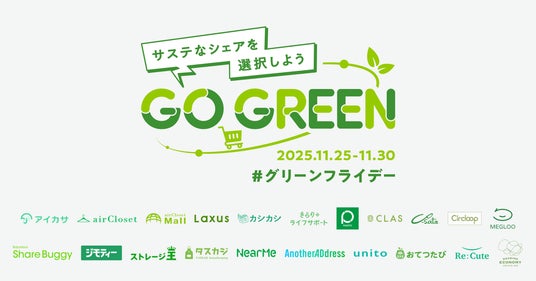 株式会社エアークローゼット(本社:東京都港区、代表取締役社長 兼 CEO:天沼 聰)は、サステナブルな消費のムーブメントであるグリーンフライデー(11月29日金曜日)に合わせ、一般社団法人シェアリングエコノミー協会様(以下、シェアエコ協会様)およびシェアリングサービス事業者19社とともに、環境に配慮した持続可能な消費行動について考える「GO GREEN プロジェクト」を実施します。