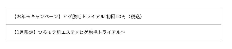 1月1日(木)から1月31日(土)までの期間中、『ヒゲ脱毛トライアル』や『全身脱毛トライアル』をお得にご体験いただけます。予約は24時間受付中ですので、ぜひこの機会にご利用ください。