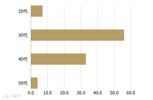 治療を始めた年齢で最も多かったのは「30代」(56%)、次いで「40代」(33%)。