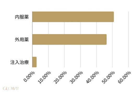 「内服薬」(50.9%)と「外用薬」(46.4%)がほぼ同率で用いられており、多くの方が複数のアプローチを併用していることが分かりました。