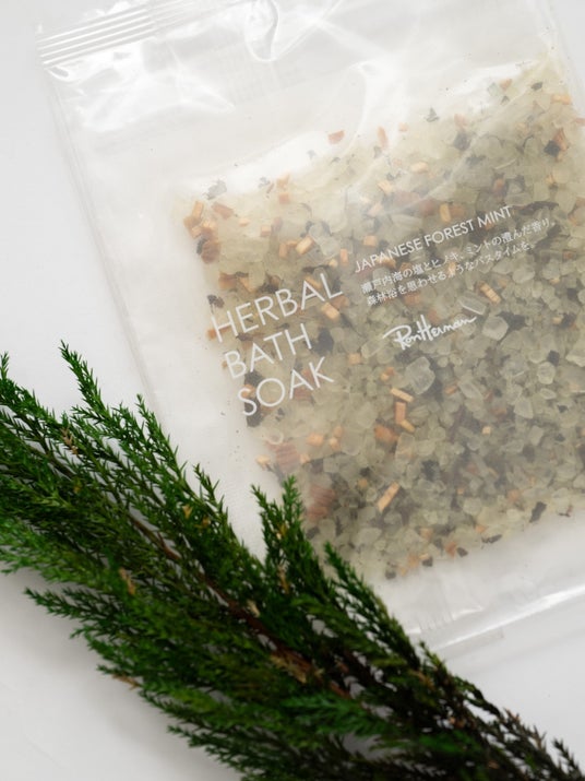 JAPANESE FOREST MINT“ディープリラックス”をテーマにした、瀬戸内海の塩とヒノキ、清涼感のあるミントの香り。森林浴を思わせる澄んだ香りが、深呼吸したくなるような穏やかなバスタイムへと誘います。