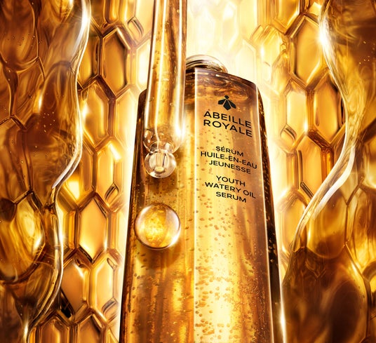〈アベイユ ロイヤル〉シリーズの象徴的な製品である〈アベイユ ロイヤル ウォータリー オイル セロム〉は、ゲランが長年培ってきた科学的進歩の結晶です。シリーズでは5世代目となる革新的なテクノロジーを新たに搭載し、肌へのエイジングケア効果を更なる高みへ導きます。