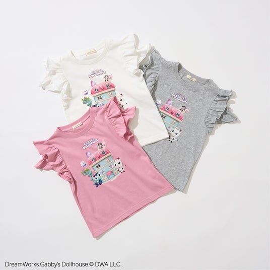 テレ東系列6局ネットにて毎週土曜あさ9時30分から放送中の人気アニメシリーズ「ギャビーのドールハウス」の主人公ギャビーをはじめ、可愛いネコちゃんキャラクターたちのプリントTシャツを3種ご用意しました。