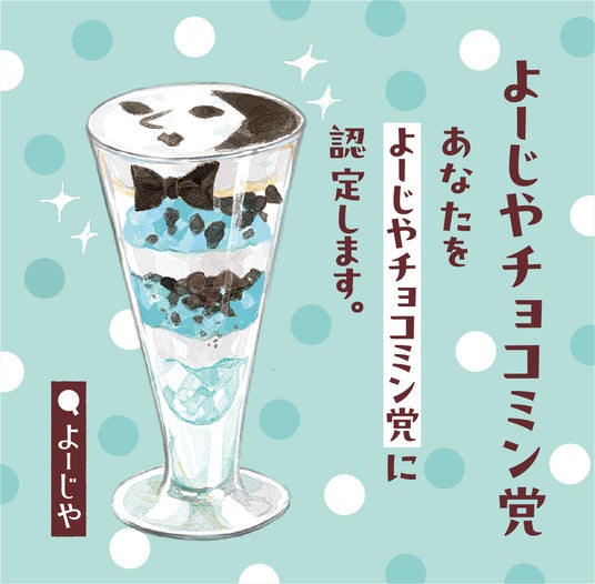 2.チョコミントスイーツのご注文でチョコミン党認定ステッカーをプレゼントチョコミントスイーツをご注文いただいたお客さまに限定ステッカーをプレゼントいたします。チョコミント好きの方はもちろん、今年初めてチャレンジされる方も大歓迎。この機会にぜひよーじやへお越しください。