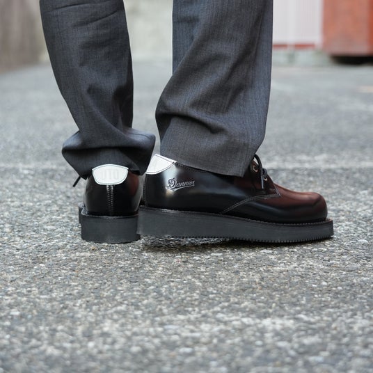 この靴が目指したのも、完成ではなく、途上にある美しさ。ベースに選んだのは、19世紀に起源を持つ最もベーシックな革靴、プレーントゥ(オックスフォード)。礼式の象徴でありながら、戦争、労働、日常を経てカジュアルにも溶け込んだ境界を越え続けてきた靴。