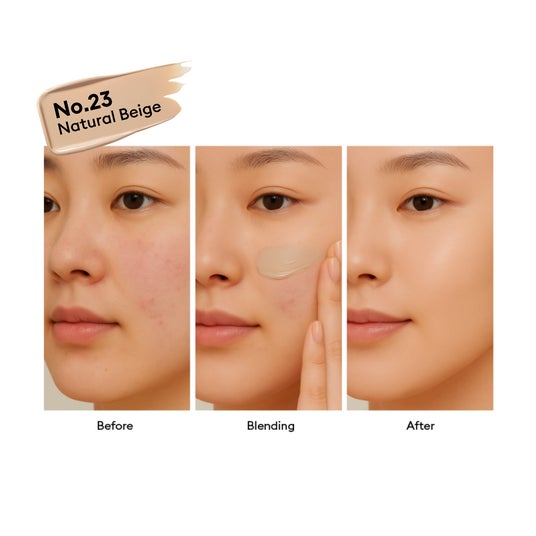 赤みをカバーするミュートカラーで、なじませるほどに肌に溶け込む自然な発色です。