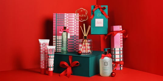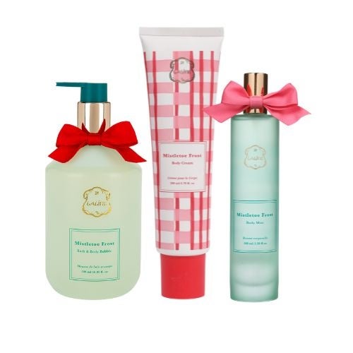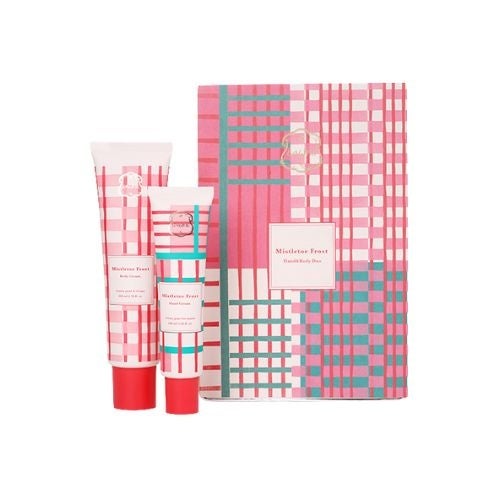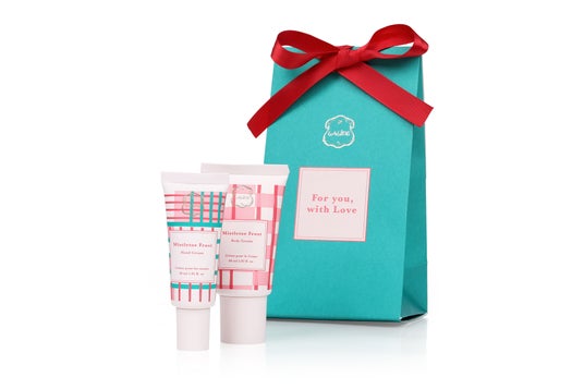 幸運をもたらすミスルトゥ(ヤドリギ)をモチーフに、赤とピンクのチェックで彩られたホリデー限定コレクション第二弾が登場。オレンジとジュニパーが奏でるあたたかな香りが、心までやさしく溶け込み、冬の肌にしっとりとうるおいを届けます。