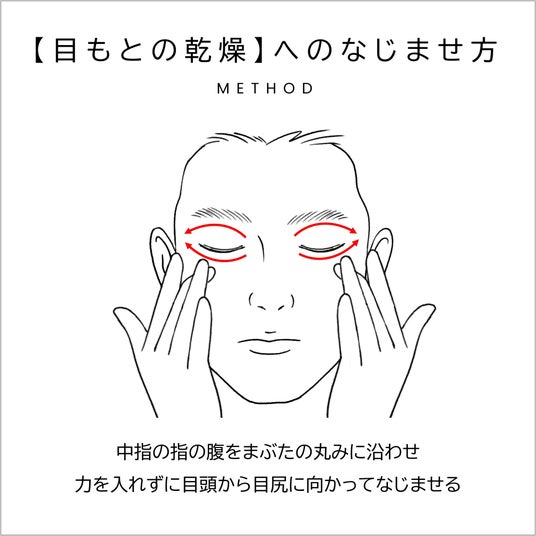30代は、目まわりの乾燥やカサつきが気になり始めることが多い年代です。まずは、顔全体をしっかり保湿したうえで、乾燥を感じやすい目もとには”丁寧な“なじませ方をプラスしましょう。