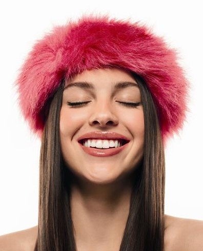 ふかふかのフェイクファーハットは、まるで「リップ イドル ジューシー トリート」が唇を優しく包み込むような心地よさを表現しています。