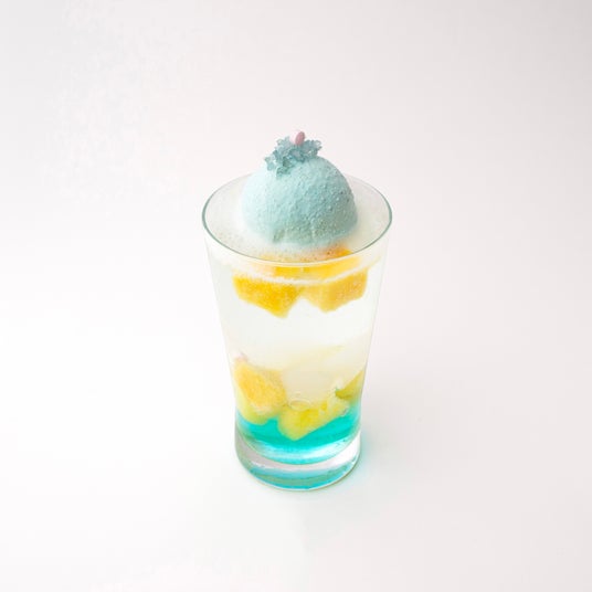 お口でパチパチかわいく弾けるキャンディをトッピングしたラムネドリンクです。ナタデココ入り♪