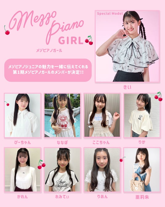 子ども服ブランドを手掛ける株式会社ナルミヤ・インターナショナル(本社:東京都港区芝公園、代表取締役執行役員社長:國京 紘宇)が展開するジュニアブランド「mezzo piano junior(メゾ ピアノ ジュニア)」は、ブランド史上初となる公式アンバサダー『第1期 メゾピアノガール』のメンバーを決定いたしました!